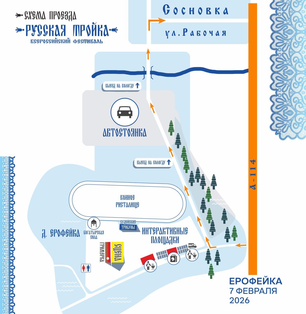 Опубликована подробная схема проезда на фестиваль «Русская тройка» под Вологдой