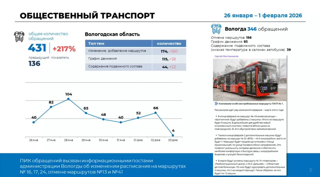 Вопрос по общественному транспорту в Вологде на контроле губернатора. Георгий Филимонов обратил внимание, что жалобы на автобусы остаются. Он подчеркнул, что нужно еще увеличить количество транспорта на маршрутах, где это требуется.