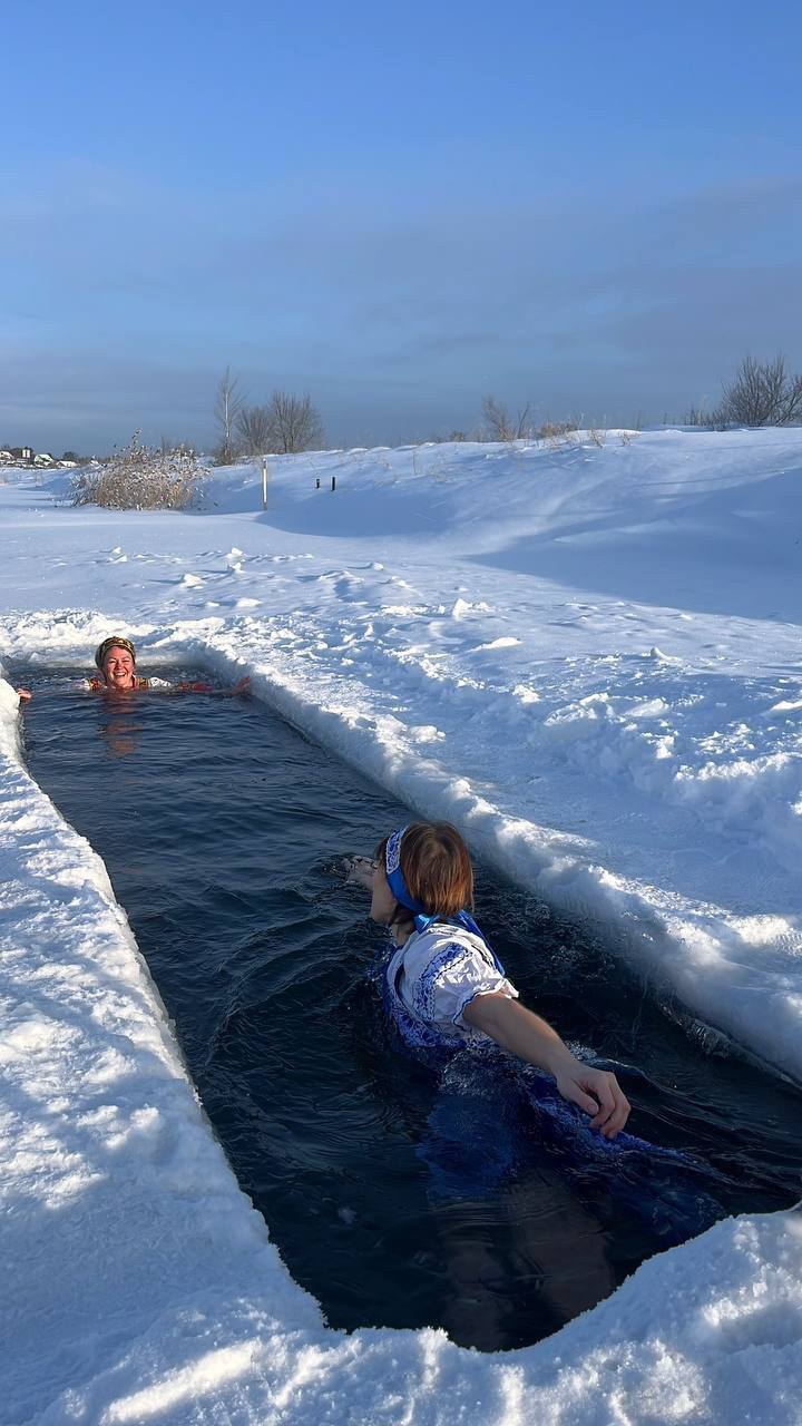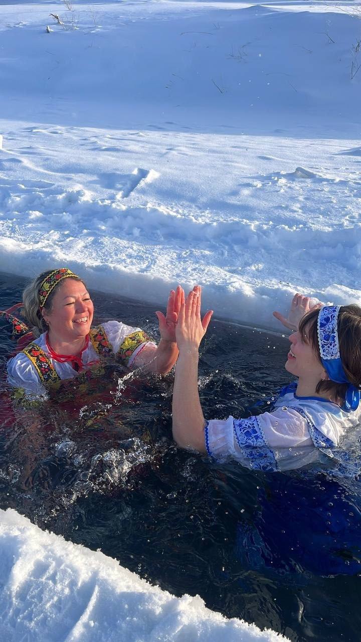 Наши землячки, вологжанки Инна Кузнецова и Екатерина Гришина, доказали это, поддержав зимнюю традицию, окунувшись в прорубь Лисицинского карьера в ярких народных костюмах!