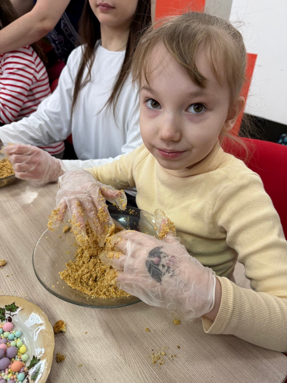 Первое занятие собрало 17 ребят вместе с родителями. Антонина Фёдорова провела кулинарный мастер-класс по приготовлению пирожных «картошка».