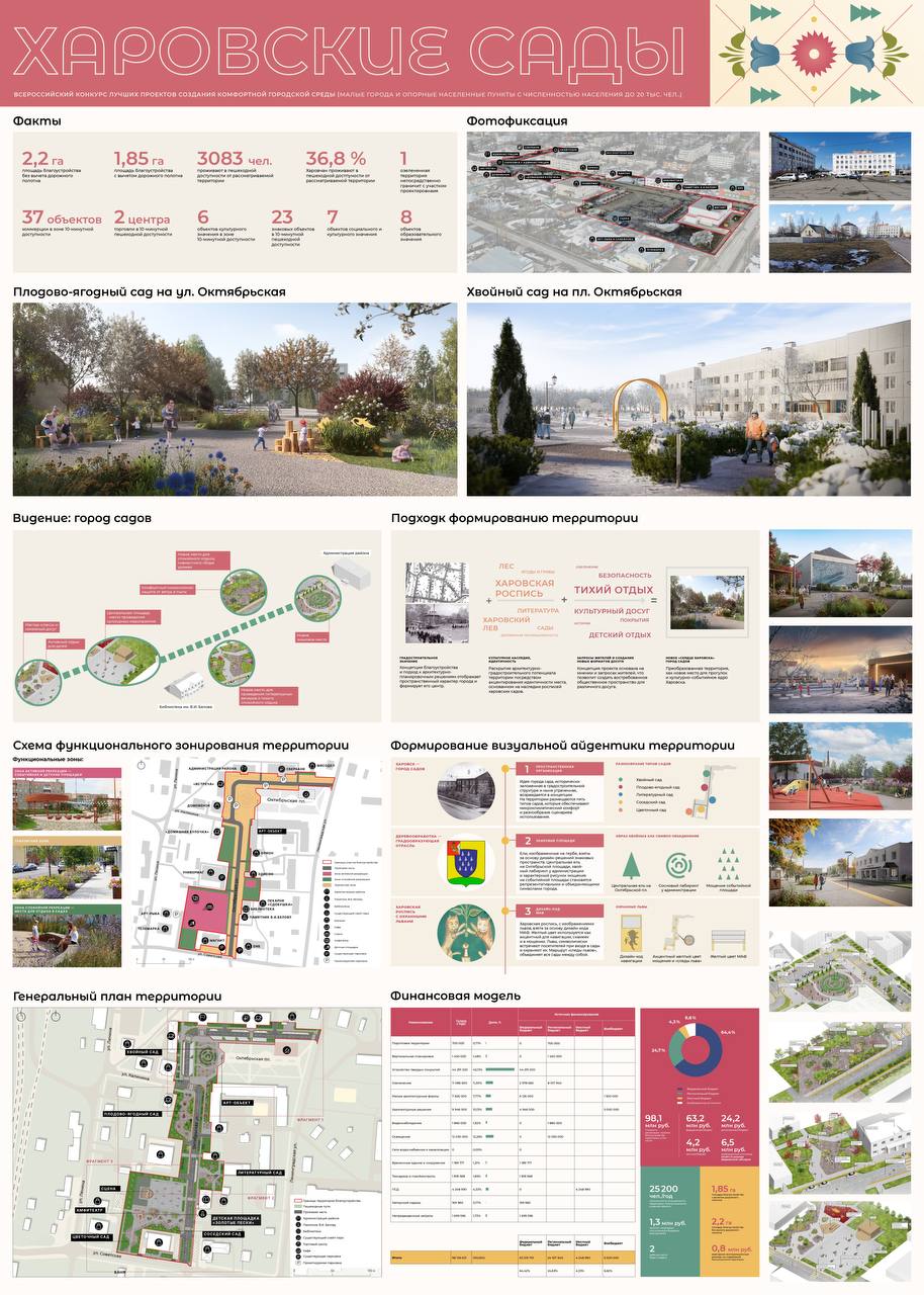 В Харовске появится тематическое пространство Харовские сады, вдохновленное символами города и историческими росписями, с зелеными зонами для круглогодичного отдыха.