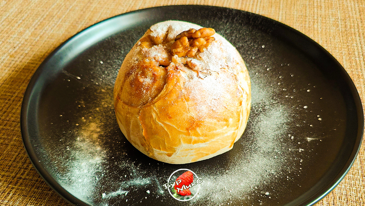 Разогрейте духовку до 180°C и запекайте яблоки 25-30 минут. Если тесто начинает подрумяниваться слишком быстро, уменьшите температуру или накройте яблоки фольгой.