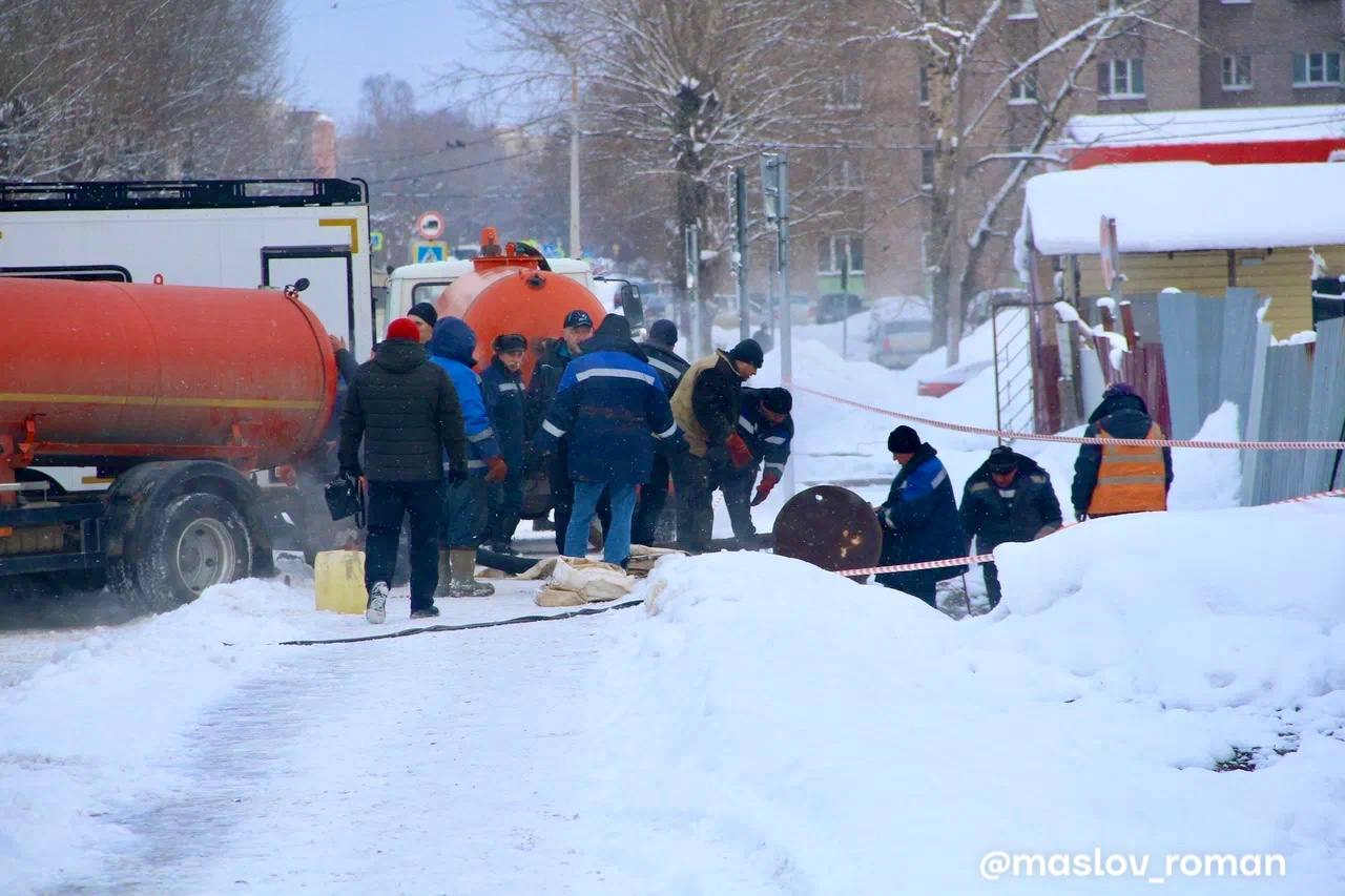 Очередная авария на тепловой сети Череповца - обнаружен дефект на трубе магистрали у дома 21 по улице Остинской.