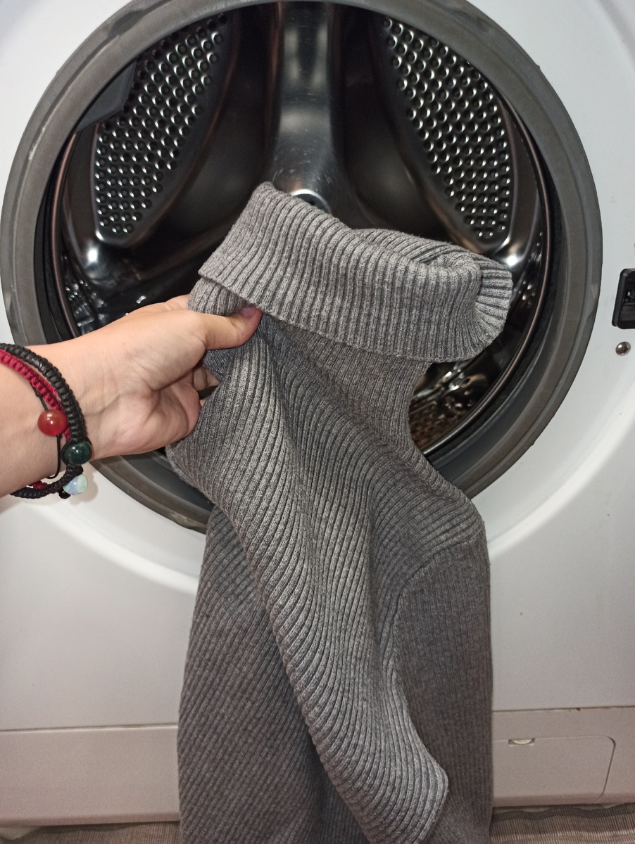 - Стирайте свитеры в холодной или слегка теплой воде, так как горячая вода приводит к сжатию волокон.