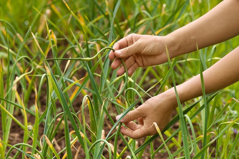 Оптимальный подход заключается в удалении стрелок, когда они достигают длины 10-15 см. Это момент, когда побеги еще не успели забрать все полезные вещества у чеснока, и вы не столкнетесь с проблемой повторного роста.