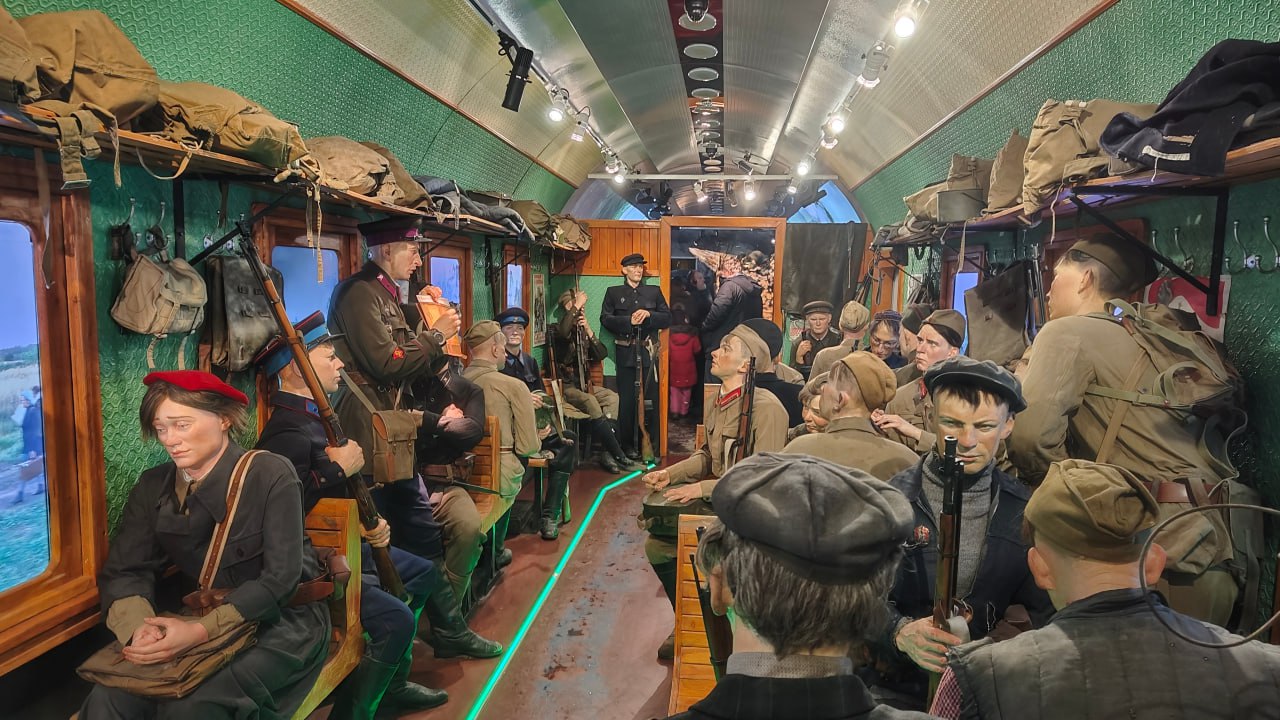 Он сделал остановку на железнодорожном вокзале. Передвижная интерактивная выставка включает в себя десять тематических вагонов, посвящённых отдельным событиям Великой Отечественной войны. Экспозиция воссоздаёт историческую реальность с помощью современных технологий.