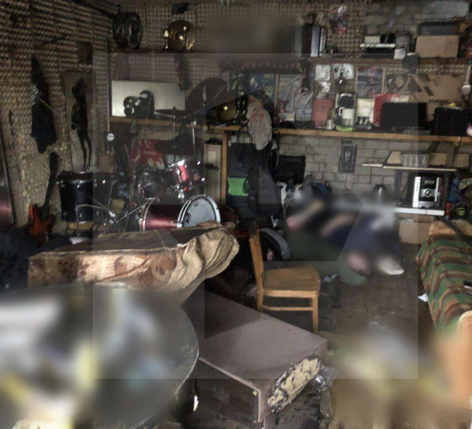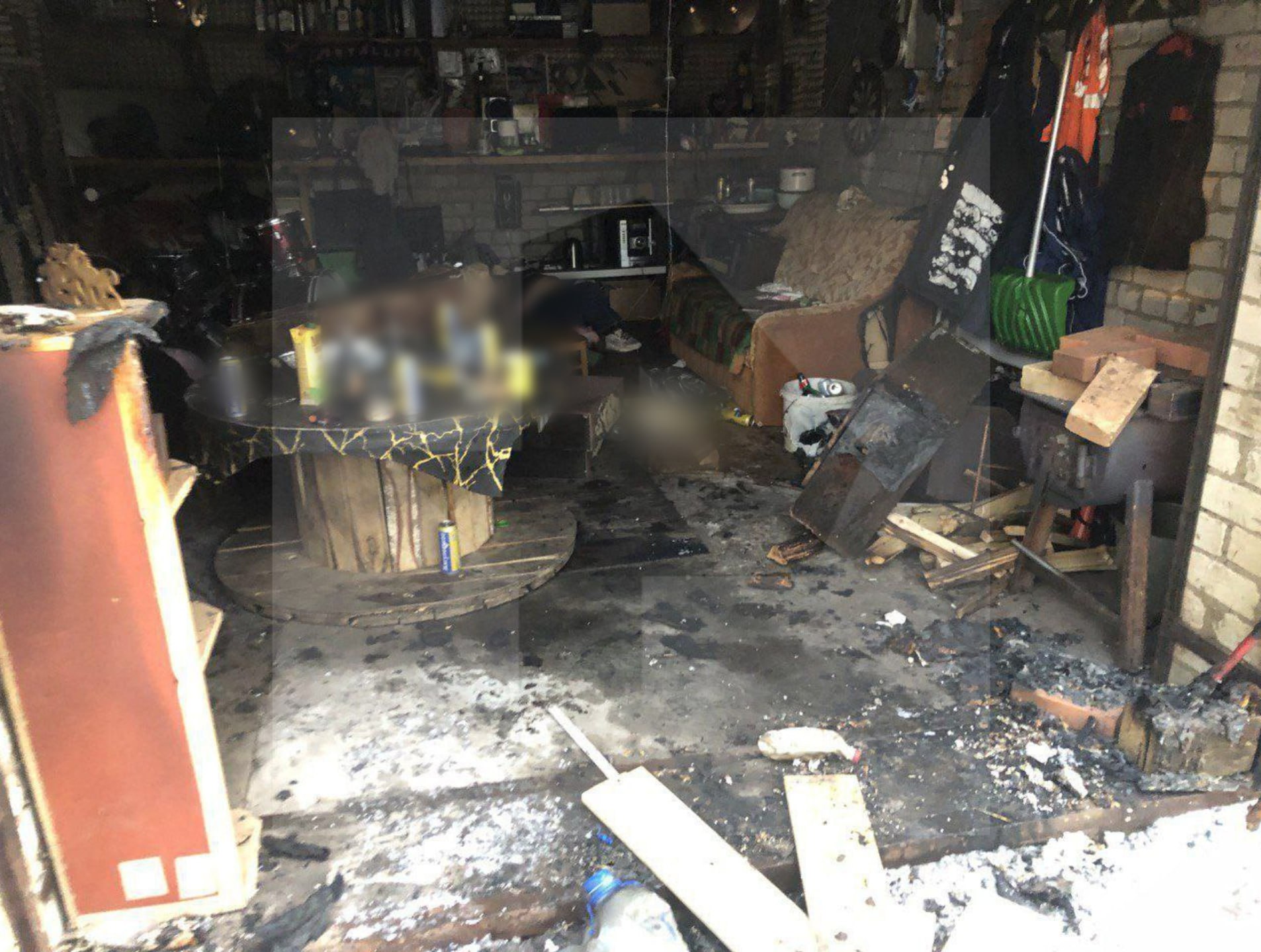 РЕН ТВ публикует фото из гаража под Вологдой, где погибли пять человек.