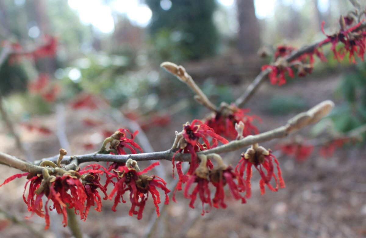 Гамамелис, этот удивительный кустарник, радует своими цветами уже с первых мартовских дней. Его сорт «Diane», посаженный в сентябре 2017 года, занял почетное место в саду и стал героем весеннего цветения, пишет источник.