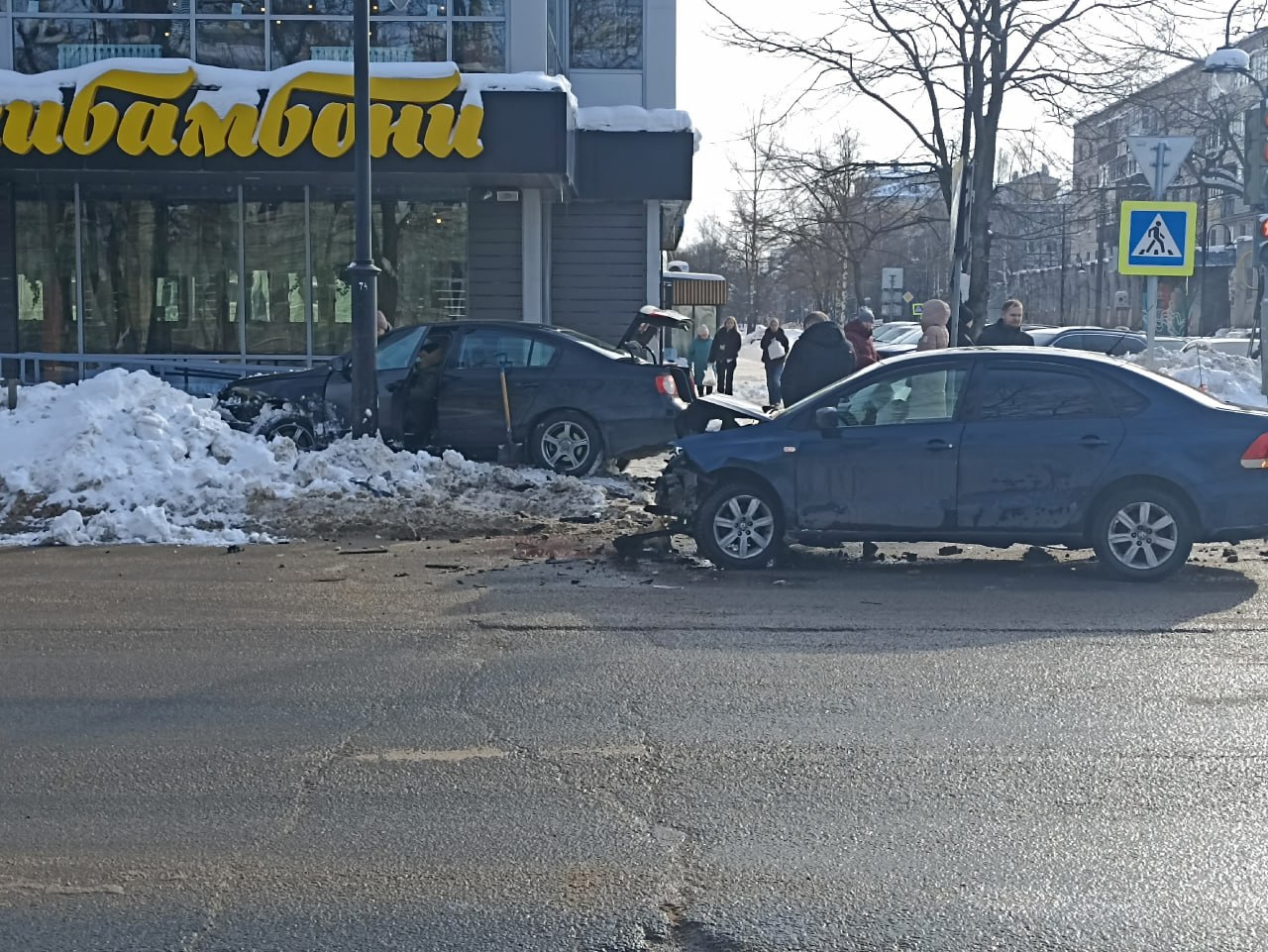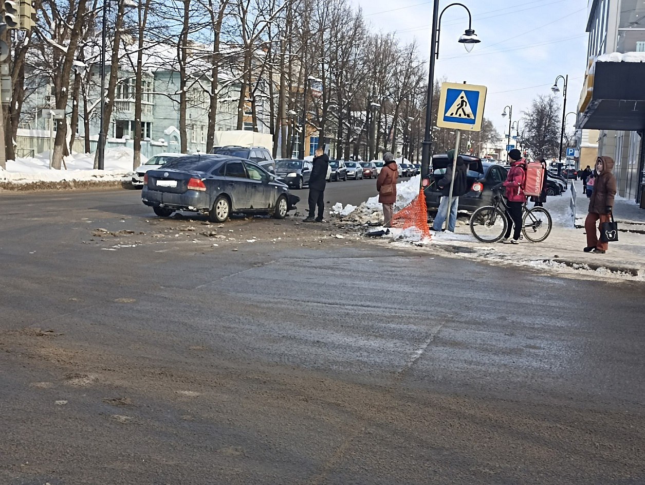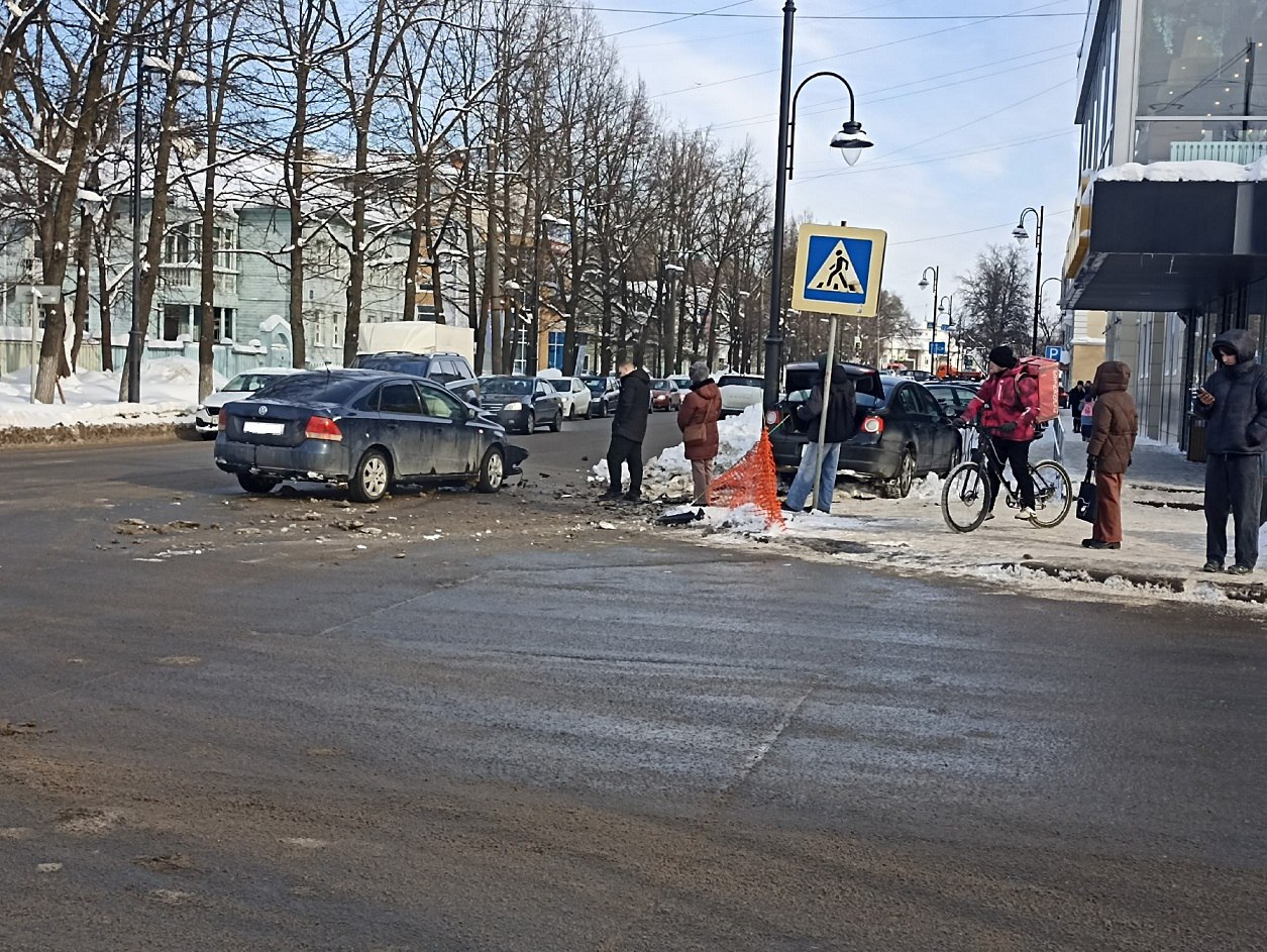 Две иномарки столкнулись в центре Вологды на перекрёстке улиц Предтеченской и Козлёнской