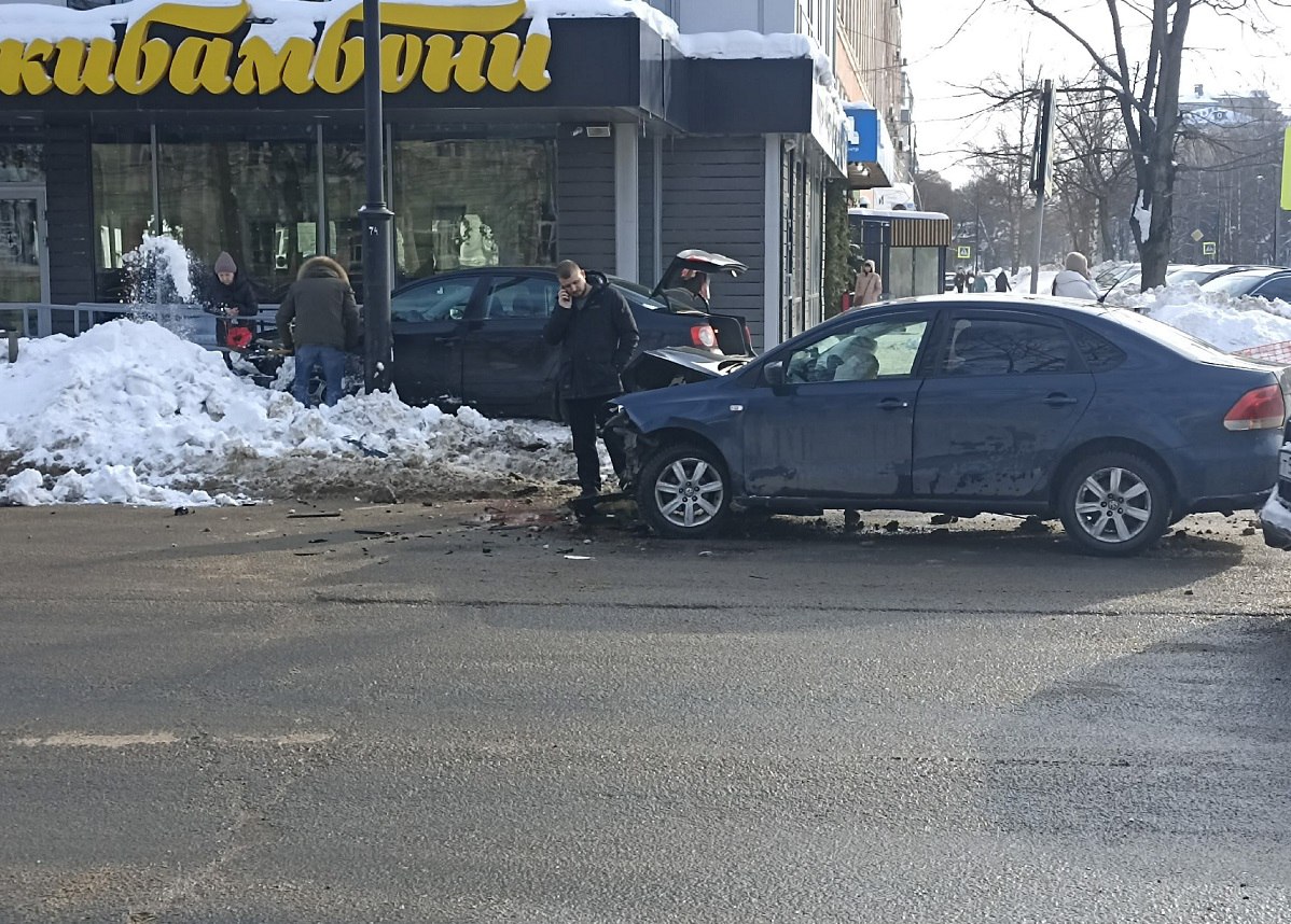 ДТП случилось сегодня днём. От удара одну из машин вынесло с проезжей части в пешеходную зону. Других подробностей инцидента пока нет.