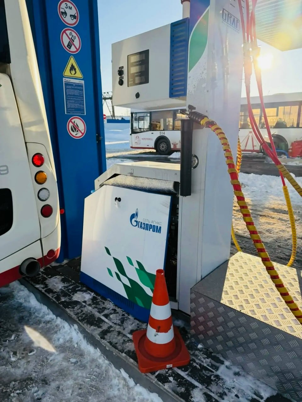 В Череповце на АЗС автобус прижал мужчину к колонке.
