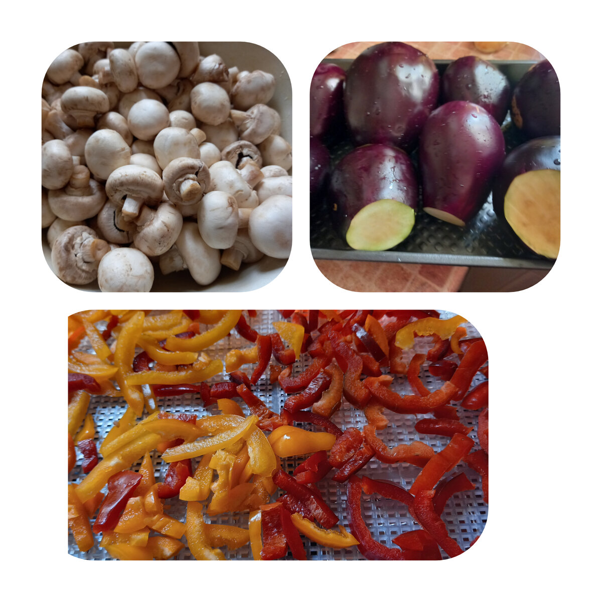 Первая остановка — дегидратор. Сушеные овощи, такие как баклажаны, кабачки и перцы, идеально подойдут для создания вкусных и насыщенных блюд. В процессе можно добавить грибы, чтобы обогатить вкус.