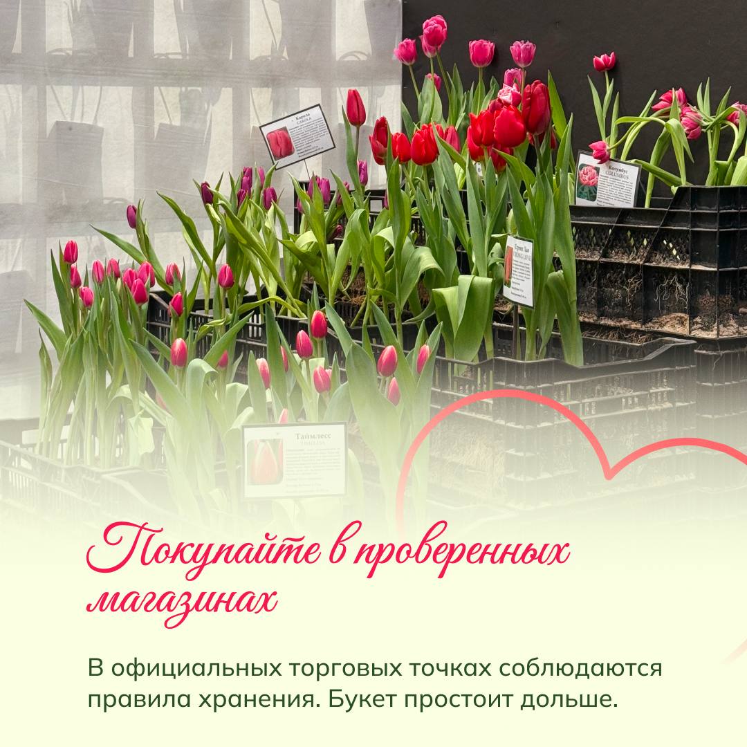 Лучше покупать цветы в санкционированных магазинах – больше шанс, что их там правильно хранят, а значит, букет будет дольше выглядеть свежим.