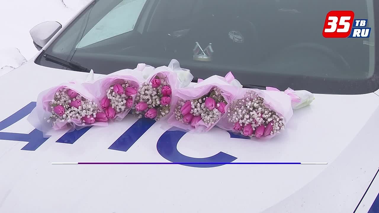 Череповецких автоледи поздравили сотрудники Госавтоинспекции в преддверии 8 Марта