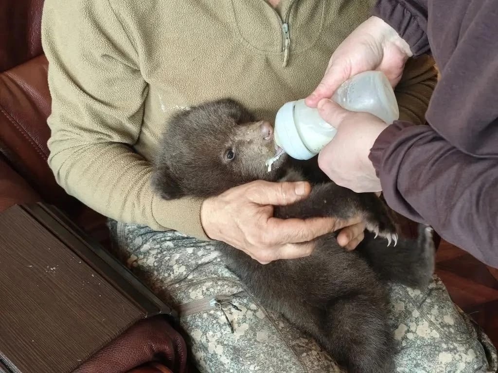 Двух осиротевших медвежат спасли в Вытегорском округе. В первые сутки заботу о малышах взяли на себя охотоведы Евгений Найченко и Андрей Аксенов. Они смогли организовать для косолапых частое кормление из бутылочки и сделали им тёплую лежанку для сна.