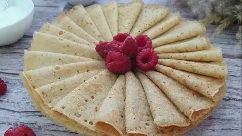 Эти блины - настоящее лакомство для гурманов! Готовятся они на молоке и завариваются кипятком, что придает им необычайно тонкую текстуру и приятный вкус. Каждый блин получается не только вкусным, но и визуально привлекательным.