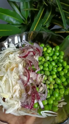 1. Белокочанная капуста с зелёным горошком и красным луком