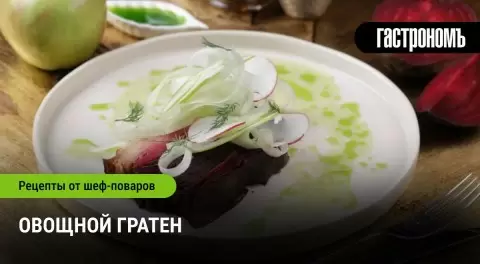 Французский гратен можно сравнить с русской запеканкой, однако его отличие заключается в изысканной технике нарезки ингредиентов на тонкие ломтики. Это не только добавляет эстетики, но и способствует лучшему впитыванию соков, что делает блюдо особенно насыщенным и ароматным. Хотя для гратена подойдут различные овощи, наиболее популярными остаются картофель и корень сельдерея. В этом рецепте шеф-повар ресторана Name, Александр Пантюхов, предлагает использовать свеклу, придавая блюду яркий цвет и неповторимый вкус.