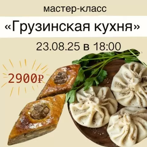 В эту субботу, 23 августа 2025 года, в 18:00 состоится уникальный мастер-класс по приготовлению грузинских блюд, стоимость которого составляет всего 2900 рублей. Участники смогут погрузиться в атмосферу кулинарии и узнать секреты приготовления традиционных блюд.