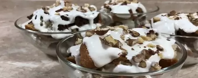 В креманки по слоям выкладывается бисквит, перемежаемый сметанным кремом и посыпанный орехами. Это лакомство не только порадует своим вкусом, но и удивит своей легкостью в приготовлении. Для тех, кто ищет более быстрый способ, можно просто перемешать коржи с кремом в одной форме и нарезать на порционные кусочки после охлаждения.
