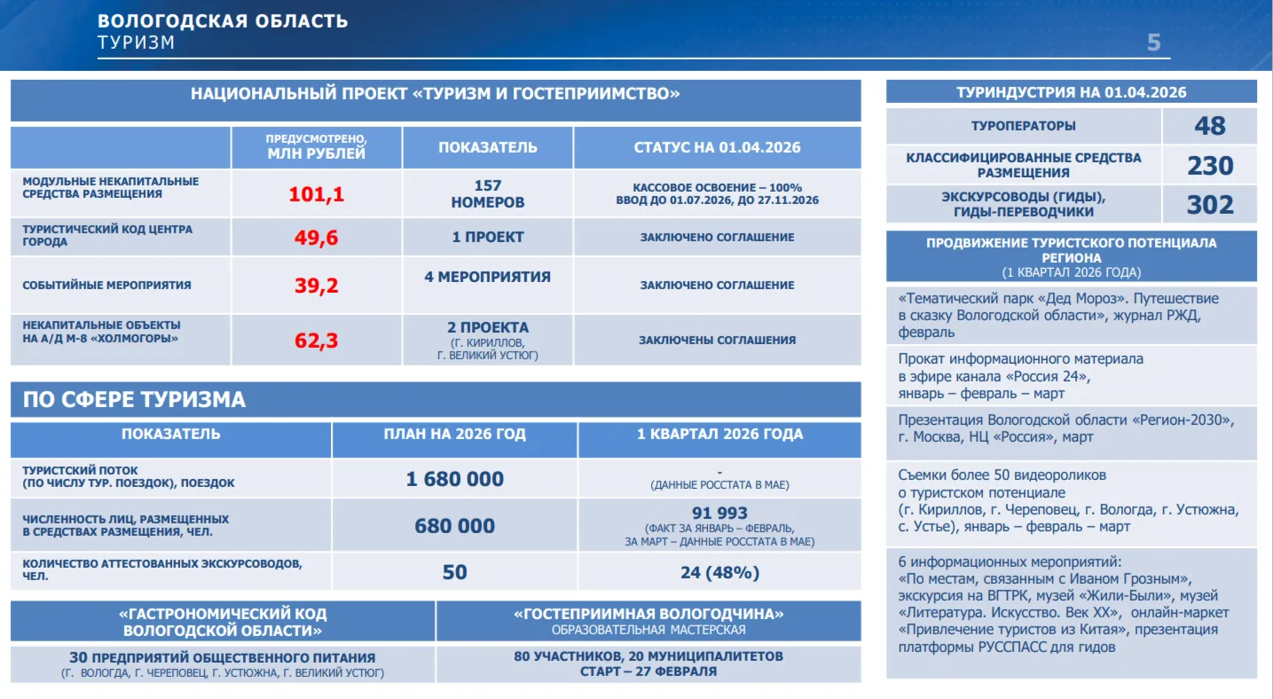 К 1 апреля создано 157 новых номеров, заключены соглашения по событиям и объектам на трассах. Прогноз на 2026 год — 1,68 млн поездок. Растёт и качество работы гидов: в апреле аттестовано 24 человека, до конца года планируется «перезагрузить» около 200 экскурсоводов.