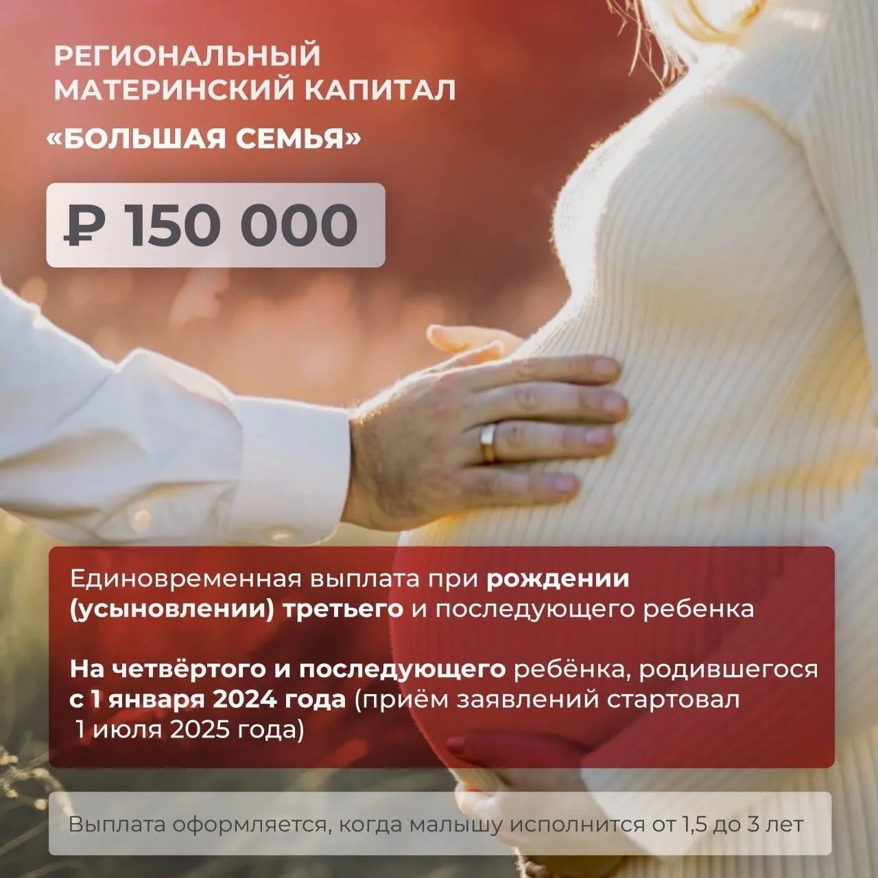 150 тыс. руб. — при рождении третьего и последующих детей;