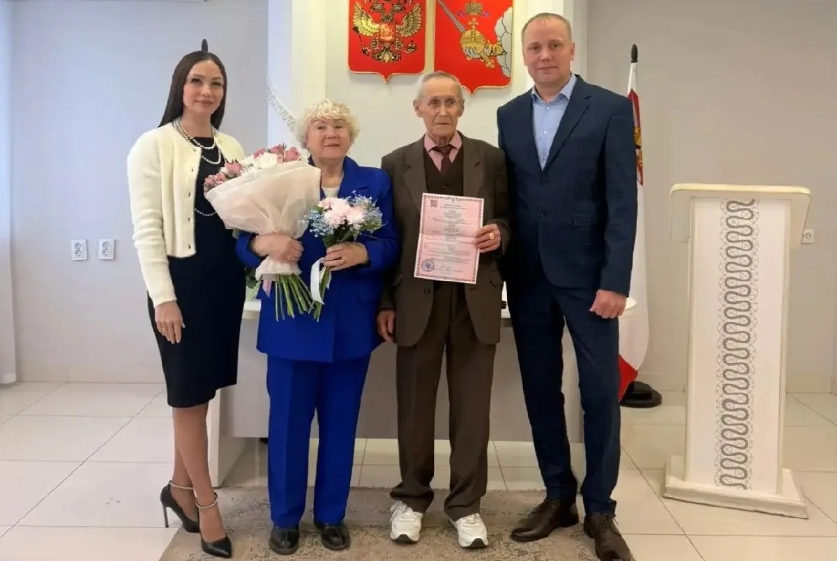 В Отделе ЗАГС №1 Вологды состоялась трогательная регистрация: узы брака заключили Валентин Савватиевич и Людмила Алексеевна. Особенность события — возраст жениха: в этом году ему исполняется 90 лет.