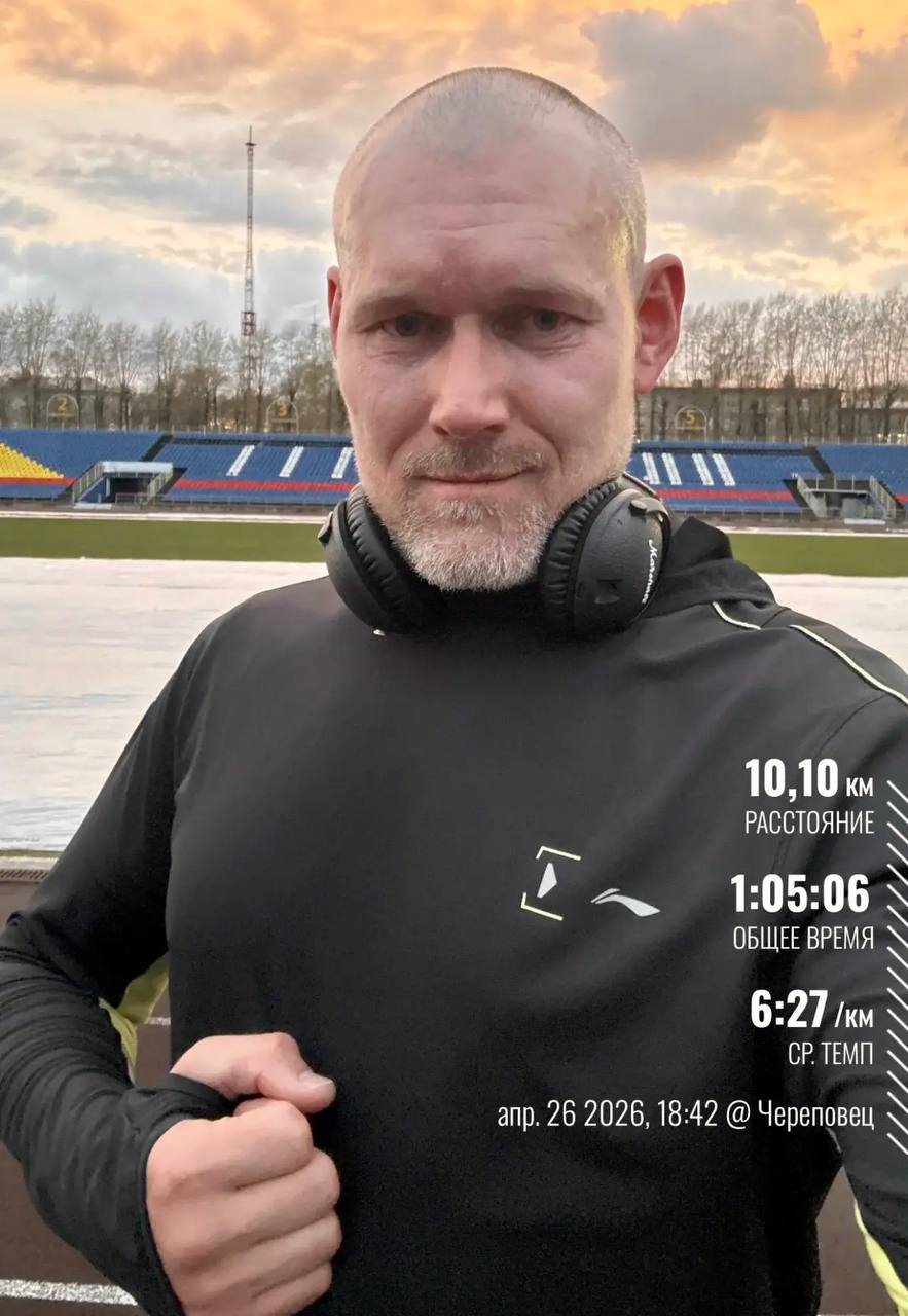Ночь выдалась непростой - поспать не удалось из-за ситуации, связанной с атаками БПЛА. Но традиционная «десятка» важнее усталости. Вышел на стадион «Череповец», пробежался, и, как это часто бывает, силы вернулись вместе с хорошим настроением.
