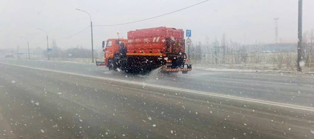 МКУ «Спецавтотранс» выводит зимние КДМ - приступает к обработке дороги солью и хлоридами;