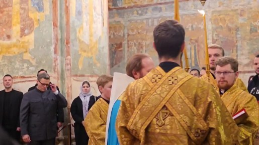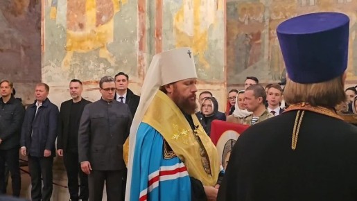 В Софийском соборе в этот момент освящают стяги с образом Спаса Нерукотворного, которые станут духовной поддержкой для наших бойцов. Молебен о здравии воинов проходит с участием губернатора Георгия Филимонова.Эти освящённые знамёна, как символ связи...